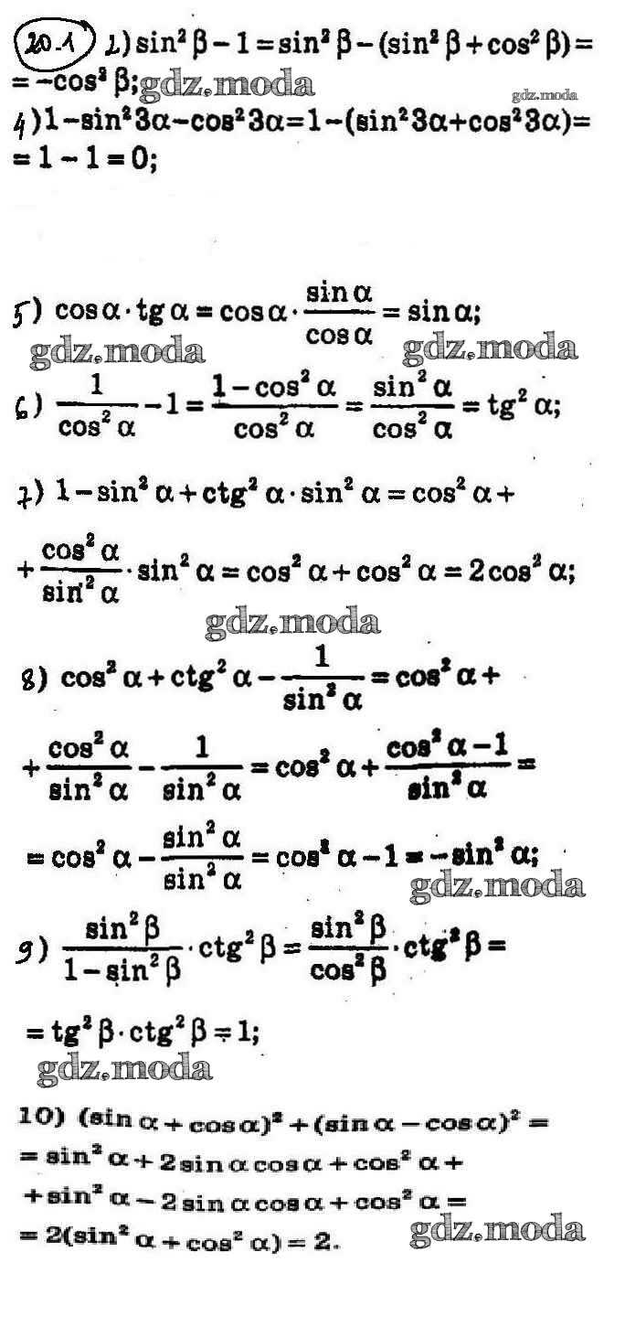 ОТВЕТ на задание № 20.1 Учебник по Алгебре 10 класс Мерзляк Алгоритм успеха Базовый уровень