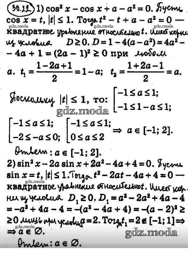 ОТВЕТ на задание № 30.22 Учебник по Алгебре 10 класс Мерзляк Алгоритм успеха Базовый уровень