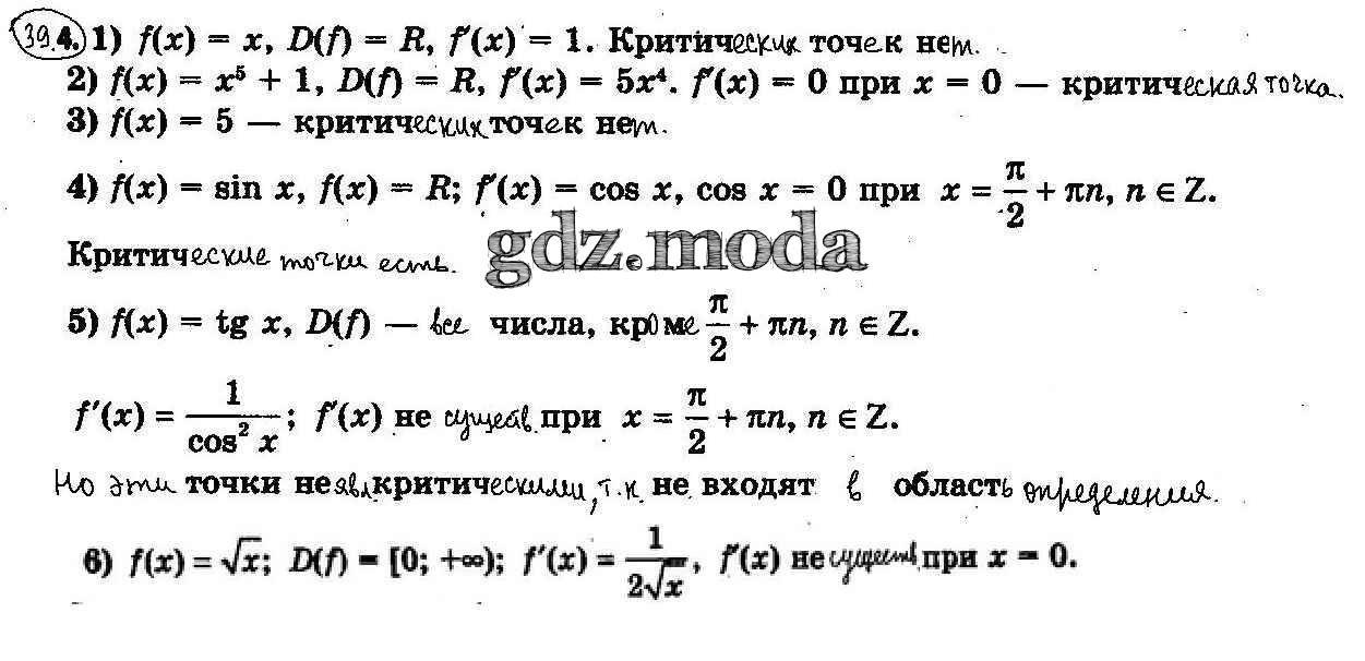 ОТВЕТ на задание № 39.4 Учебник по Алгебре 10 класс Мерзляк Алгоритм успеха Базовый уровень