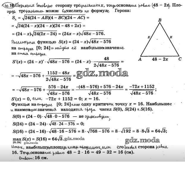 ОТВЕТ на задание № 40.19 Учебник по Алгебре 10 класс Мерзляк Алгоритм успеха Базовый уровень