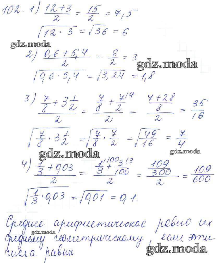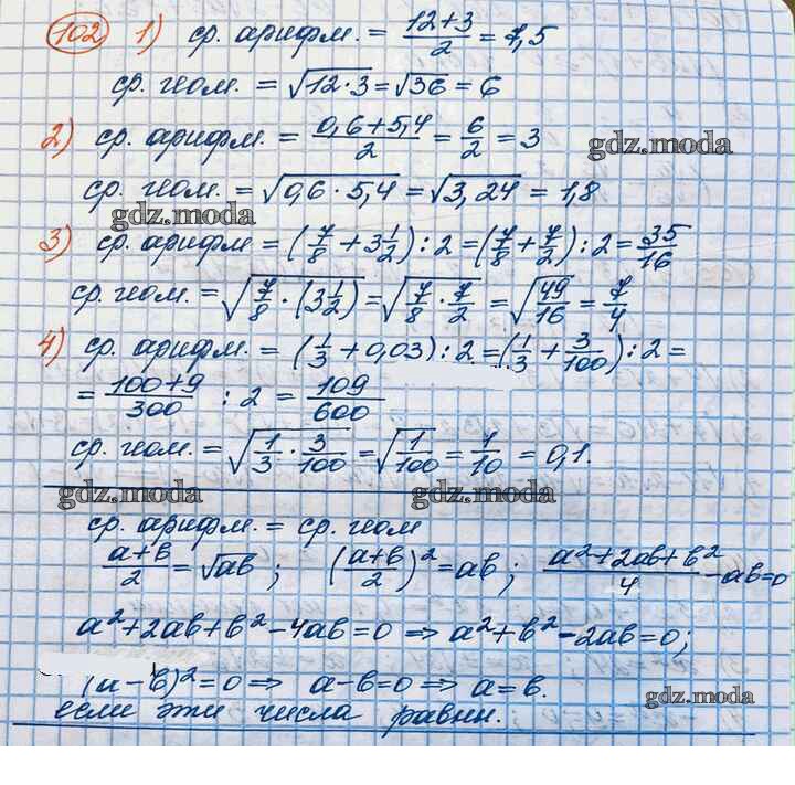 ГДЗ решение к заданию № 102 Алгебра и начала математического анализа 10 класс Базовый и углубленный уровни Колягин Ю.М. Просвещение 2017 Базовый и углубленный уровень ФГОС бесплатно на гдз.мода!