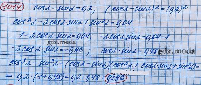 ГДЗ решение к заданию № 1014 Алгебра и начала математического анализа 10 класс Базовый и углубленный уровни Колягин Ю.М. Просвещение 2017 Базовый и углубленный уровень ФГОС бесплатно на гдз.мода!