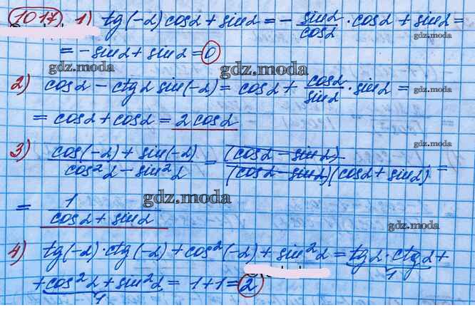 ГДЗ решение к заданию № 1017 Алгебра и начала математического анализа 10 класс Базовый и углубленный уровни Колягин Ю.М. Просвещение 2017 Базовый и углубленный уровень ФГОС бесплатно на гдз.мода!