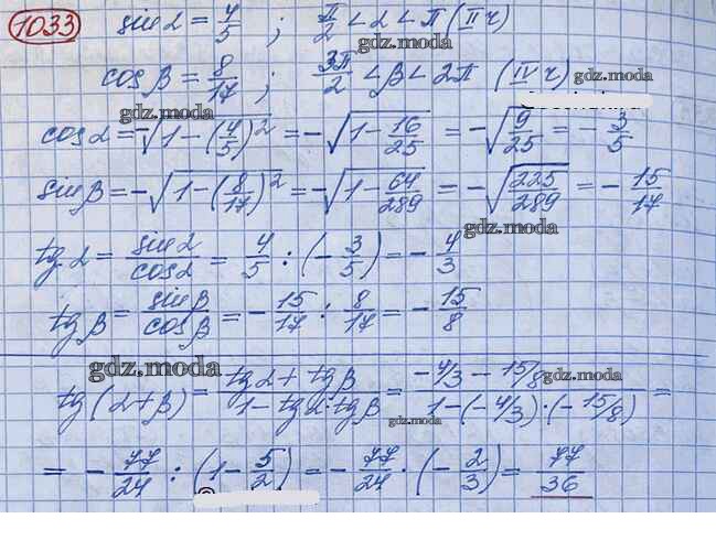 ГДЗ решение к заданию № 1033 Алгебра и начала математического анализа 10 класс Базовый и углубленный уровни Колягин Ю.М. Просвещение 2017 Базовый и углубленный уровень ФГОС бесплатно на гдз.мода!