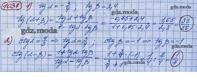 ГДЗ решение к заданию № 1037 Алгебра и начала математического анализа 10 класс Базовый и углубленный уровни Колягин Ю.М. Просвещение 2017 Базовый и углубленный уровень ФГОС бесплатно на гдз.мода!