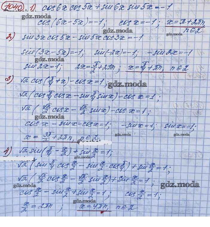 ГДЗ решение к заданию № 1040 Алгебра и начала математического анализа 10 класс Базовый и углубленный уровни Колягин Ю.М. Просвещение 2017 Базовый и углубленный уровень ФГОС бесплатно на гдз.мода!