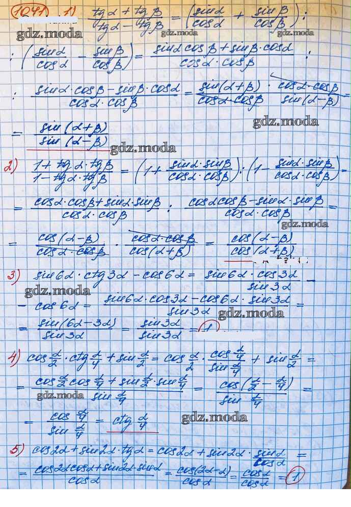 ГДЗ решение к заданию № 1041 Алгебра и начала математического анализа 10 класс Базовый и углубленный уровни Колягин Ю.М. Просвещение 2017 Базовый и углубленный уровень ФГОС бесплатно на гдз.мода!