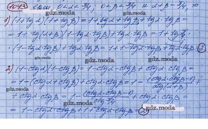 ГДЗ решение к заданию № 1043 Алгебра и начала математического анализа 10 класс Базовый и углубленный уровни Колягин Ю.М. Просвещение 2017 Базовый и углубленный уровень ФГОС бесплатно на гдз.мода!