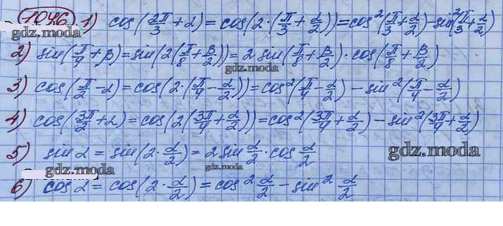 ГДЗ решение к заданию № 1046 Алгебра и начала математического анализа 10 класс Базовый и углубленный уровни Колягин Ю.М. Просвещение 2017 Базовый и углубленный уровень ФГОС бесплатно на гдз.мода!
