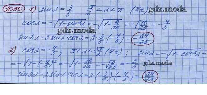 ГДЗ решение к заданию № 1050 Алгебра и начала математического анализа 10 класс Базовый и углубленный уровни Колягин Ю.М. Просвещение 2017 Базовый и углубленный уровень ФГОС бесплатно на гдз.мода!