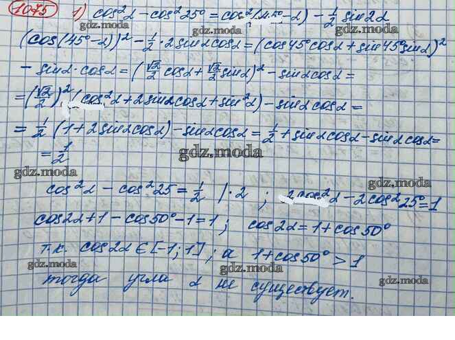 ГДЗ решение к заданию № 1075 Алгебра и начала математического анализа 10 класс Базовый и углубленный уровни Колягин Ю.М. Просвещение 2017 Базовый и углубленный уровень ФГОС бесплатно на гдз.мода!