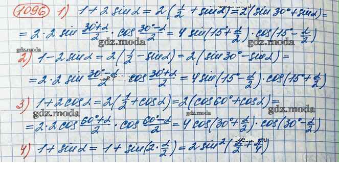 ГДЗ решение к заданию № 1096 Алгебра и начала математического анализа 10 класс Базовый и углубленный уровни Колягин Ю.М. Просвещение 2017 Базовый и углубленный уровень ФГОС бесплатно на гдз.мода!