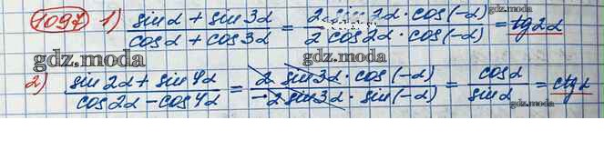 ГДЗ решение к заданию № 1097 Алгебра и начала математического анализа 10 класс Базовый и углубленный уровни Колягин Ю.М. Просвещение 2017 Базовый и углубленный уровень ФГОС бесплатно на гдз.мода!