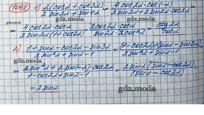 ГДЗ решение к заданию № 1098 Алгебра и начала математического анализа 10 класс Базовый и углубленный уровни Колягин Ю.М. Просвещение 2017 Базовый и углубленный уровень ФГОС бесплатно на гдз.мода!