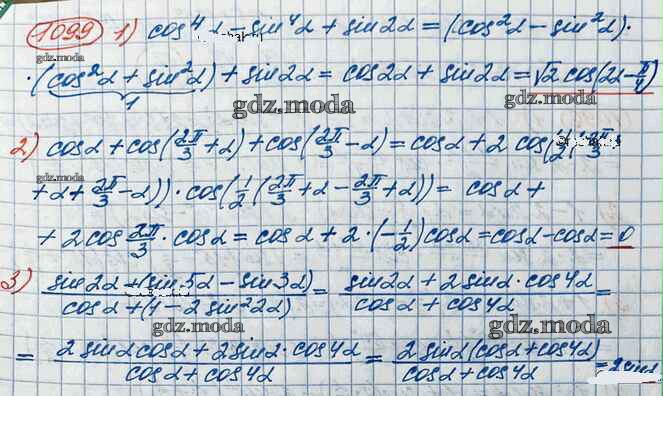 ГДЗ решение к заданию № 1099 Алгебра и начала математического анализа 10 класс Базовый и углубленный уровни Колягин Ю.М. Просвещение 2017 Базовый и углубленный уровень ФГОС бесплатно на гдз.мода!