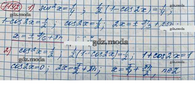 ГДЗ решение к заданию № 1192 Алгебра и начала математического анализа 10 класс Базовый и углубленный уровни Колягин Ю.М. Просвещение 2017 Базовый и углубленный уровень ФГОС бесплатно на гдз.мода!