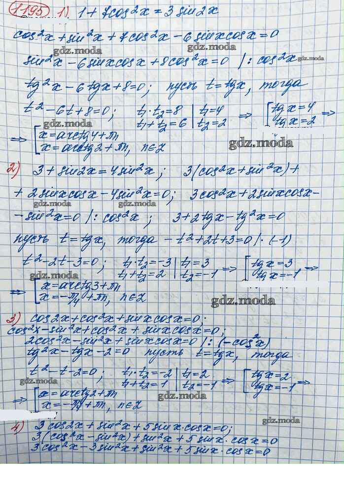 ГДЗ решение к заданию № 1195 Алгебра и начала математического анализа 10 класс Базовый и углубленный уровни Колягин Ю.М. Просвещение 2017 Базовый и углубленный уровень ФГОС бесплатно на гдз.мода!