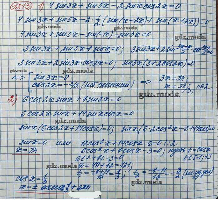 ОТВЕТ на задание № 1213 Учебник по Алгебре 10 класс Колягин Базовый и углубленный уровень