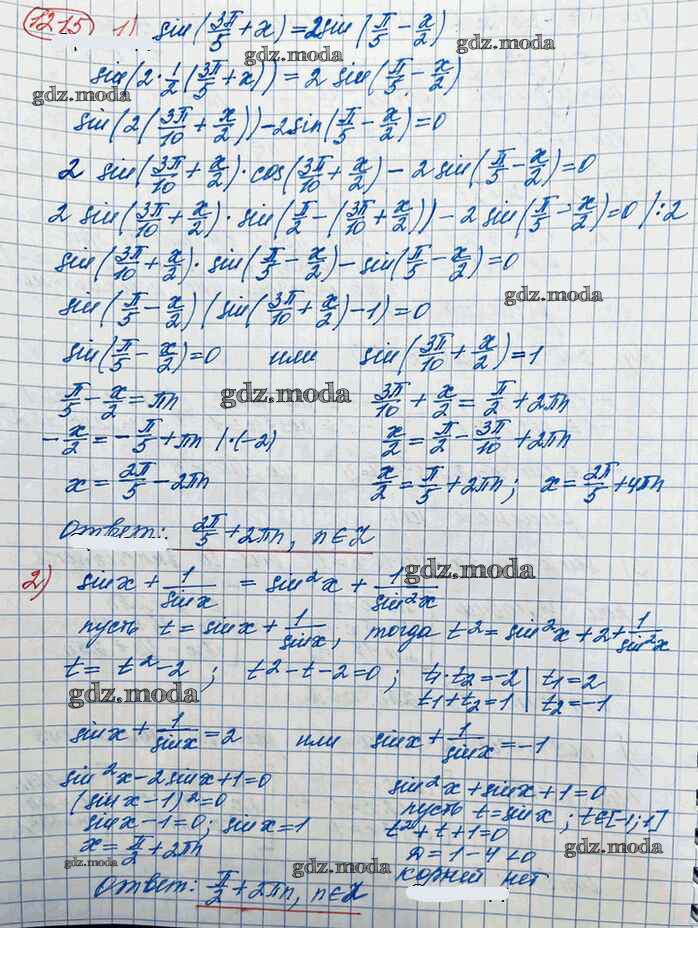 ГДЗ решение к заданию № 1215 Алгебра и начала математического анализа 10 класс Базовый и углубленный уровни Колягин Ю.М. Просвещение 2017 Базовый и углубленный уровень ФГОС бесплатно на гдз.мода!
