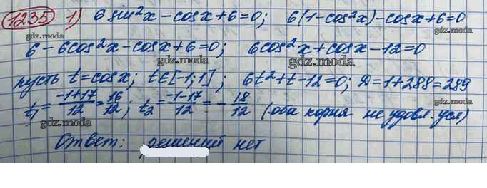 ГДЗ решение к заданию № 1235 Алгебра и начала математического анализа 10 класс Базовый и углубленный уровни Колягин Ю.М. Просвещение 2017 Базовый и углубленный уровень ФГОС бесплатно на гдз.мода!