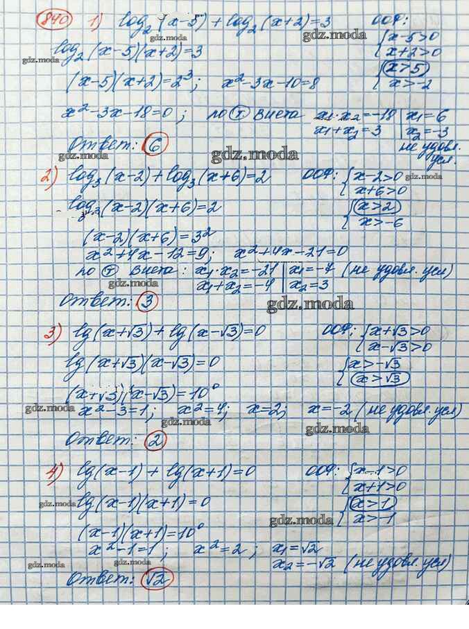 ГДЗ решение к заданию № 840 Алгебра и начала математического анализа 10 класс Базовый и углубленный уровни Колягин Ю.М. Просвещение 2017 Базовый и углубленный уровень ФГОС бесплатно на гдз.мода!