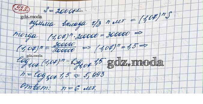 ОТВЕТ на задание № 922 Учебник по Алгебре 10 класс Колягин Базовый и углубленный уровень