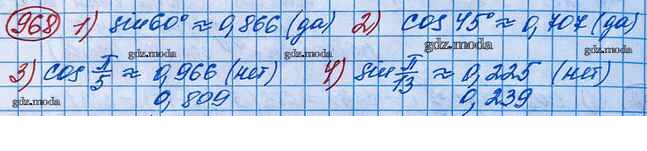 ГДЗ решение к заданию № 968 Алгебра и начала математического анализа 10 класс Базовый и углубленный уровни Колягин Ю.М. Просвещение 2017 Базовый и углубленный уровень ФГОС бесплатно на гдз.мода!