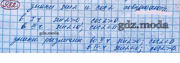 ГДЗ решение к заданию № 982 Алгебра и начала математического анализа 10 класс Базовый и углубленный уровни Колягин Ю.М. Просвещение 2017 Базовый и углубленный уровень ФГОС бесплатно на гдз.мода!