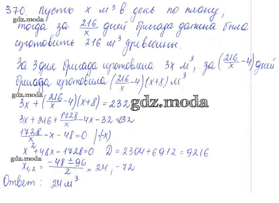 ГДЗ решение к заданию № 370 Алгебра и начала математического анализа 10 класс Базовый и углубленный уровни Колягин Ю.М. Просвещение 2017 Базовый и углубленный уровень ФГОС бесплатно на гдз.мода!