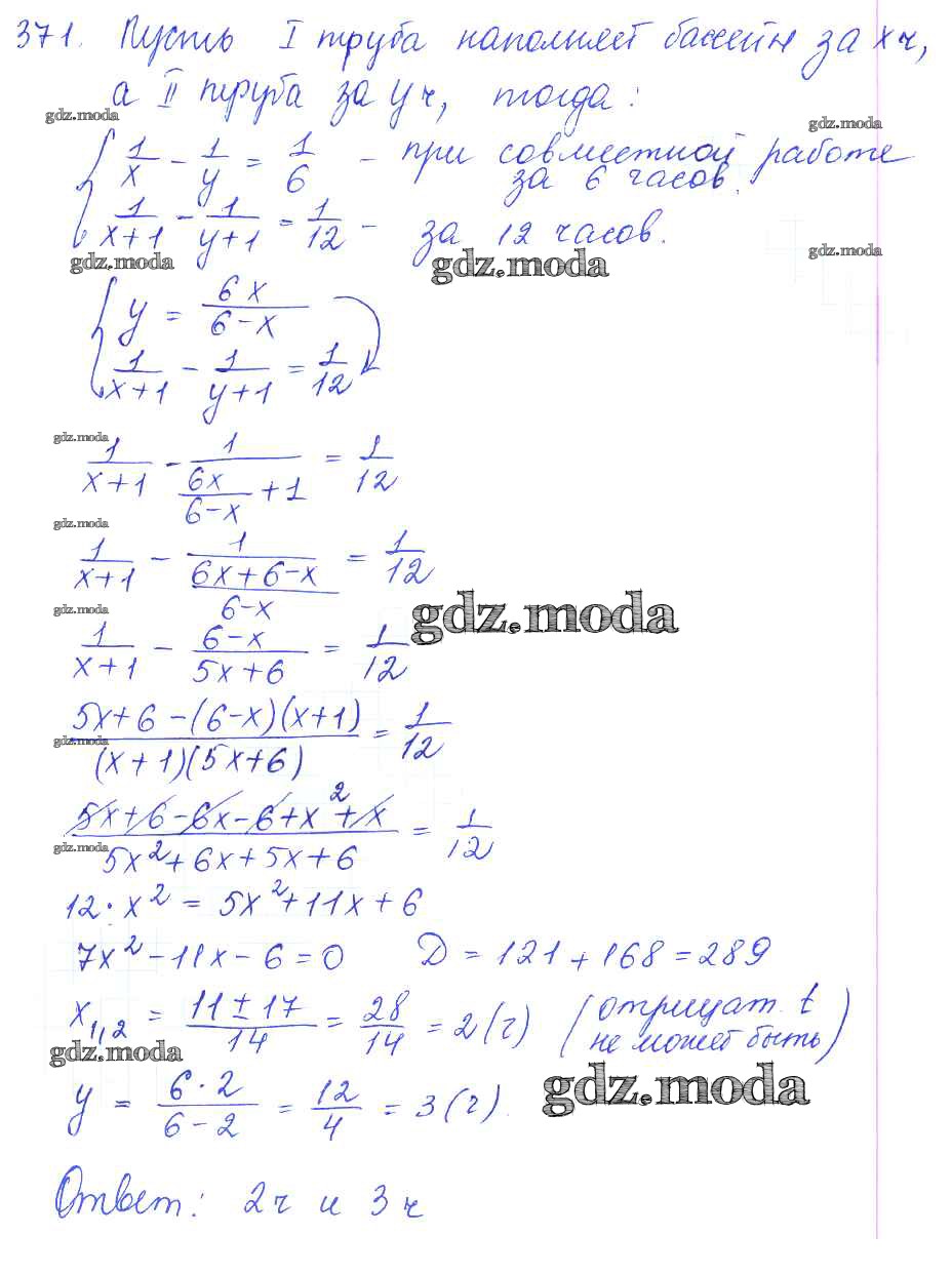 ГДЗ решение к заданию № 371 Алгебра и начала математического анализа 10 класс Базовый и углубленный уровни Колягин Ю.М. Просвещение 2017 Базовый и углубленный уровень ФГОС бесплатно на гдз.мода!