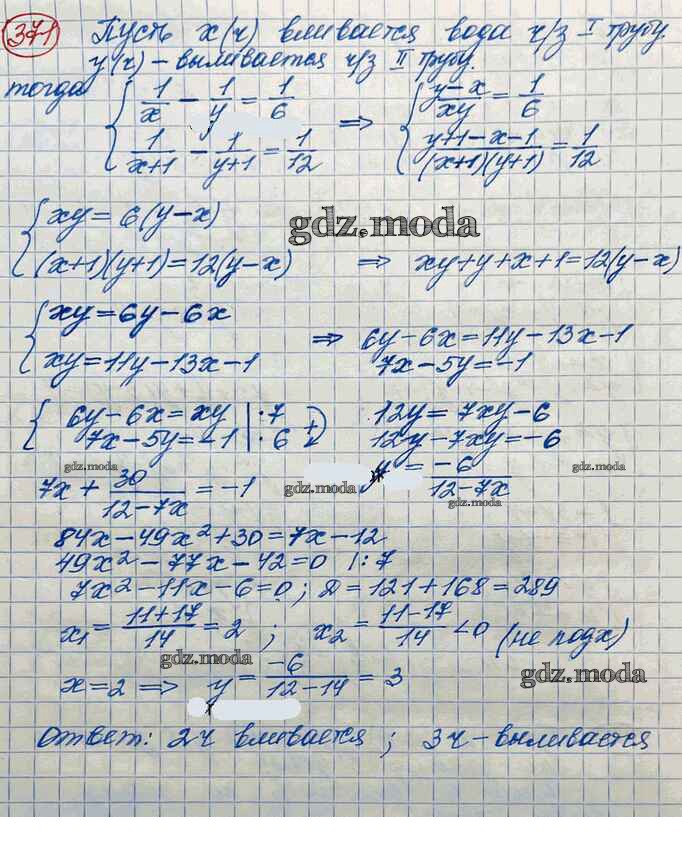 ОТВЕТ на задание № 371 Учебник по Алгебре 10 класс Колягин Базовый и углубленный уровень