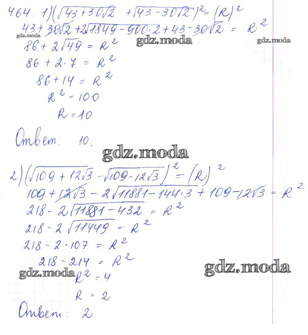 ГДЗ решение к заданию № 464 Алгебра и начала математического анализа 10 класс Базовый и углубленный уровни Колягин Ю.М. Просвещение 2017 Базовый и углубленный уровень ФГОС бесплатно на гдз.мода!