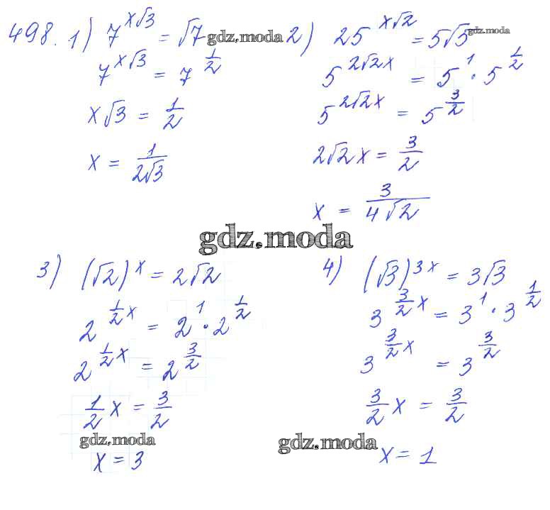 ОТВЕТ на задание № 498 Учебник по Алгебре 10 класс Колягин Базовый и углубленный уровень