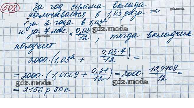 ОТВЕТ на задание № 508 Учебник по Алгебре 10 класс Колягин Базовый и углубленный уровень