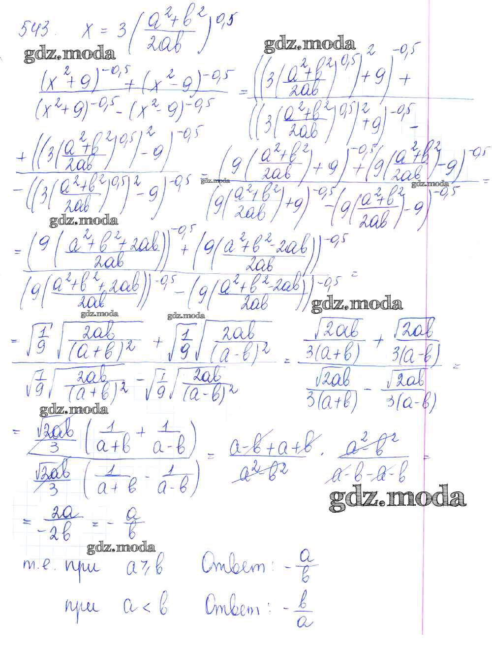 ОТВЕТ на задание № 543 Учебник по Алгебре 10 класс Колягин Базовый и углубленный уровень