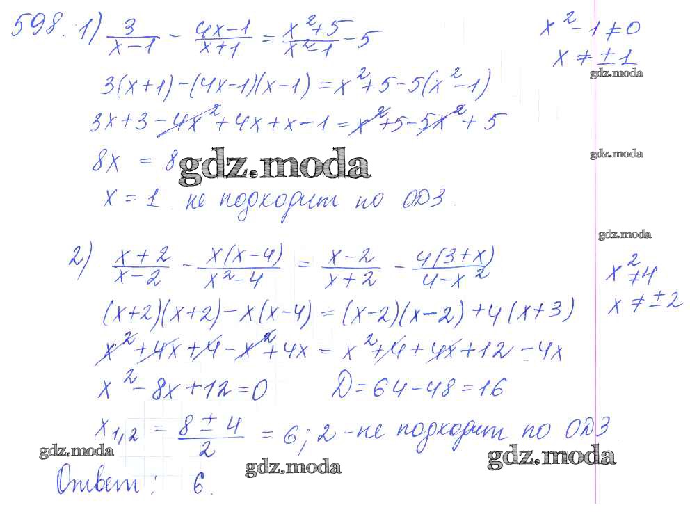 ОТВЕТ на задание № 598 Учебник по Алгебре 10 класс Колягин Базовый и углубленный уровень