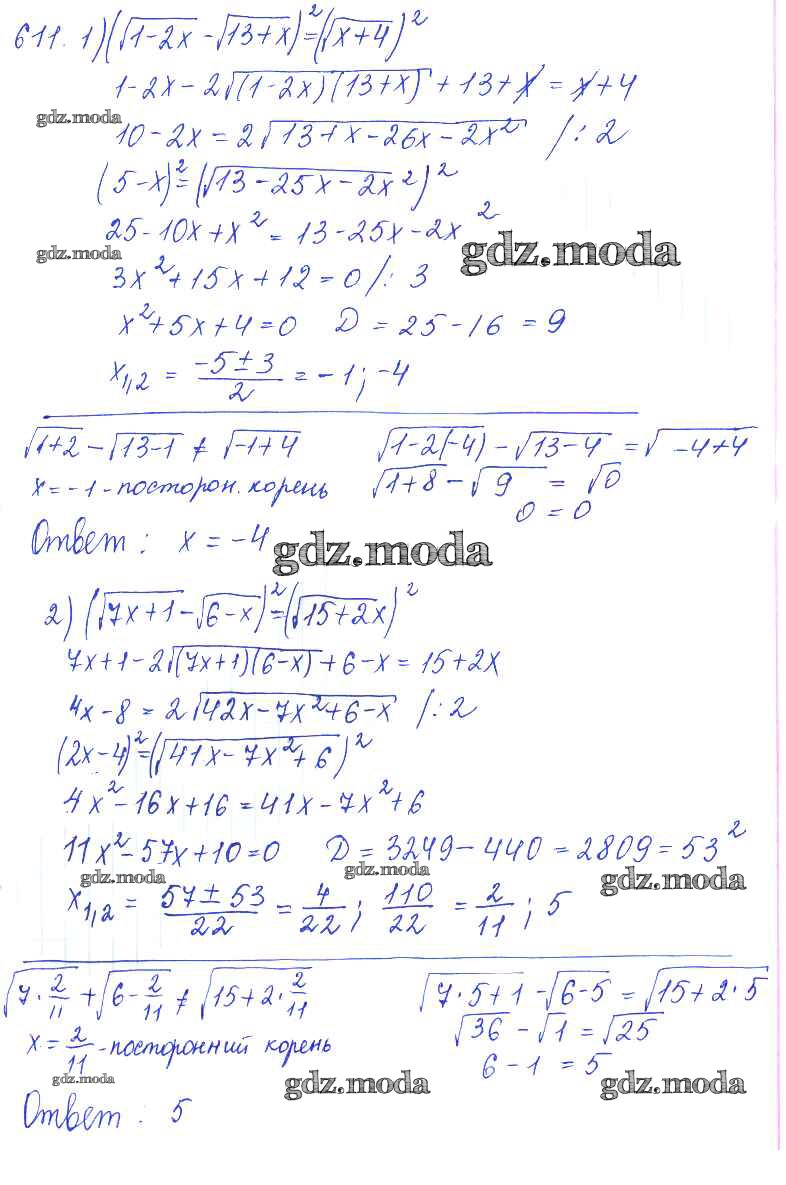 ГДЗ решение к заданию № 611 Алгебра и начала математического анализа 10 класс Базовый и углубленный уровни Колягин Ю.М. Просвещение 2017 Базовый и углубленный уровень ФГОС бесплатно на гдз.мода!