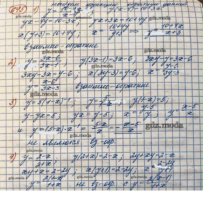ОТВЕТ на задание № 645 Учебник по Алгебре 10 класс Колягин Базовый и углубленный уровень