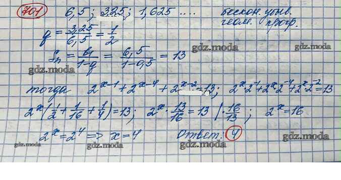ОТВЕТ на задание № 701 Учебник по Алгебре 10 класс Колягин Базовый и углубленный уровень