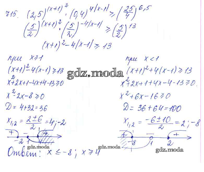 ГДЗ решение к заданию № 715 Алгебра и начала математического анализа 10 класс Базовый и углубленный уровни Колягин Ю.М. Просвещение 2017 Базовый и углубленный уровень ФГОС бесплатно на гдз.мода!