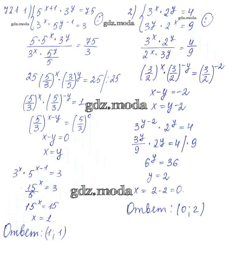 ГДЗ решение к заданию № 721 Алгебра и начала математического анализа 10 класс Базовый и углубленный уровни Колягин Ю.М. Просвещение 2017 Базовый и углубленный уровень ФГОС бесплатно на гдз.мода!