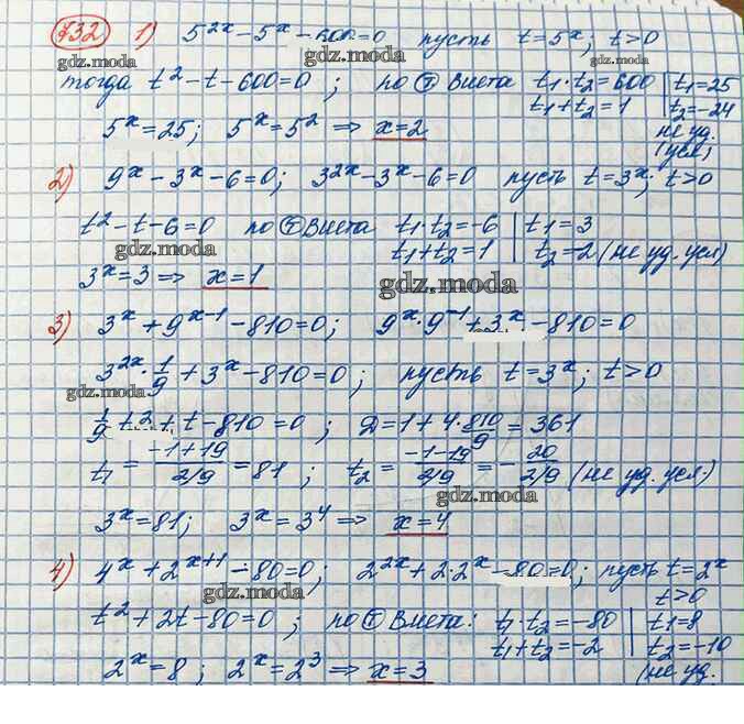 ОТВЕТ на задание № 732 Учебник по Алгебре 10 класс Колягин Базовый и углубленный уровень
