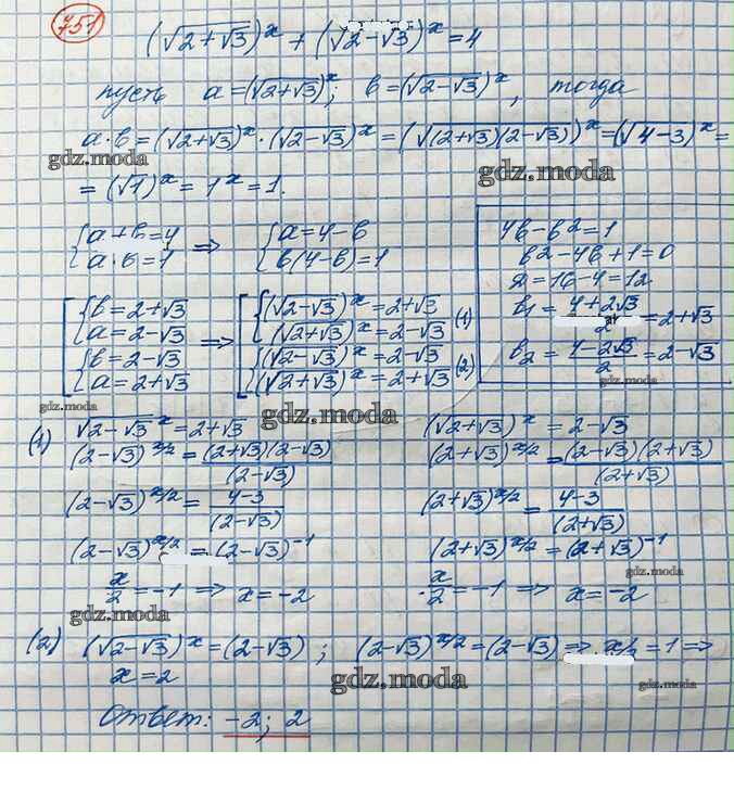 ОТВЕТ на задание № 751 Учебник по Алгебре 10 класс Колягин Базовый и углубленный уровень