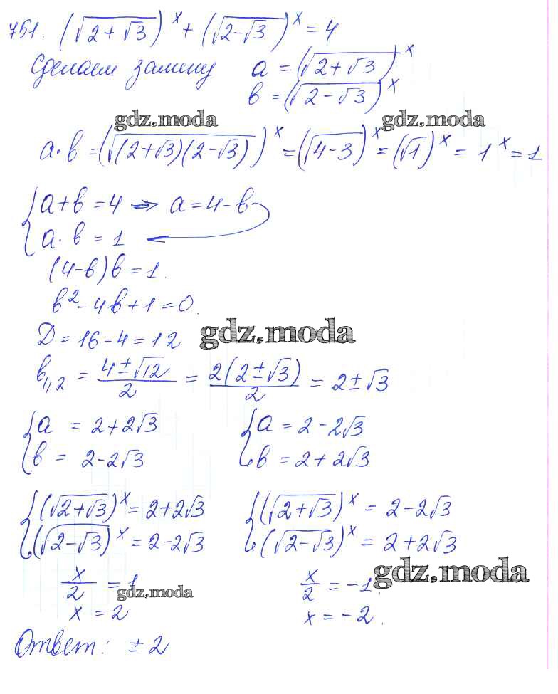 ГДЗ решение к заданию № 751 Алгебра и начала математического анализа 10 класс Базовый и углубленный уровни Колягин Ю.М. Просвещение 2017 Базовый и углубленный уровень ФГОС бесплатно на гдз.мода!