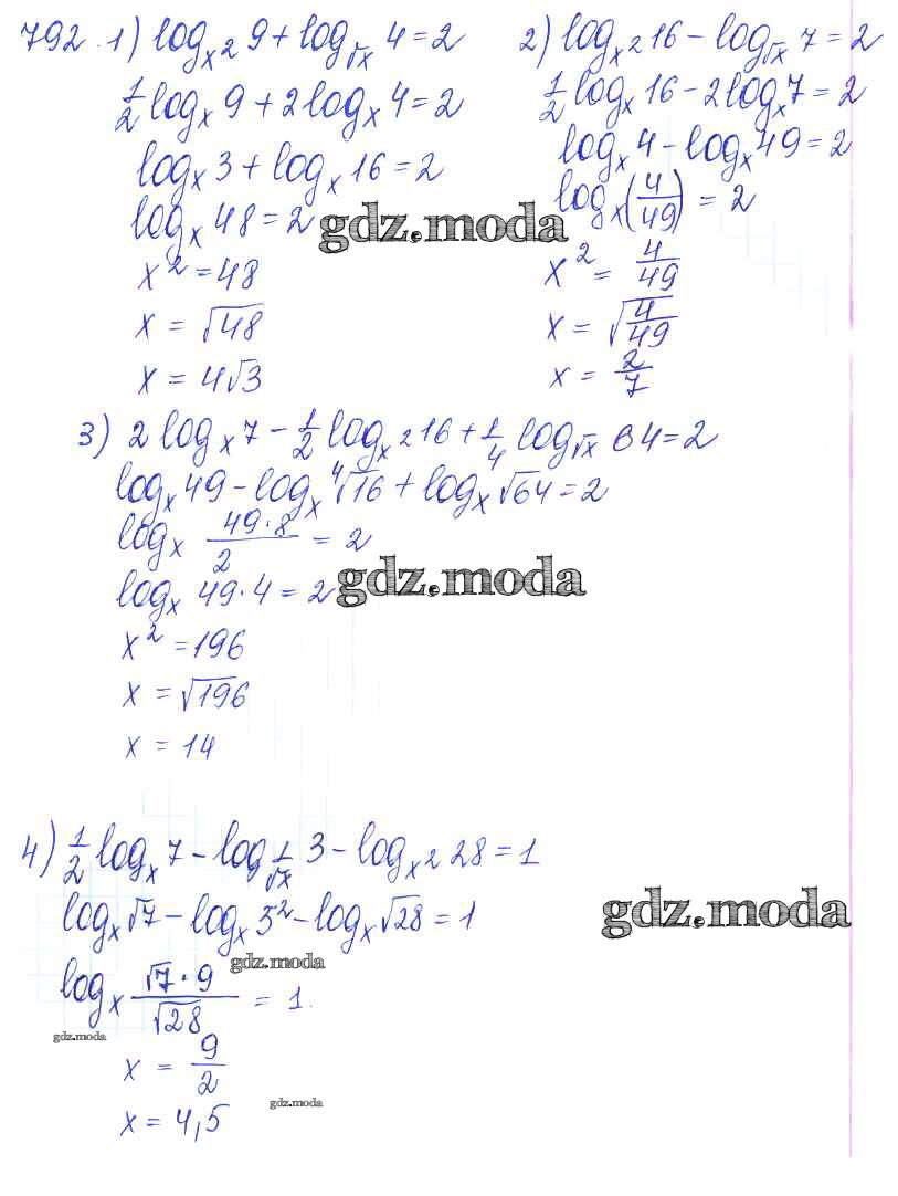ОТВЕТ на задание № 792 Учебник по Алгебре 10 класс Колягин Базовый и углубленный уровень