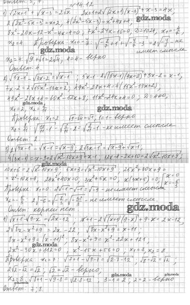 ОТВЕТ на задание № 14.12 Учебник по Алгебре 10 класс Мерзляк Алгоритм успеха Углубленный уровень