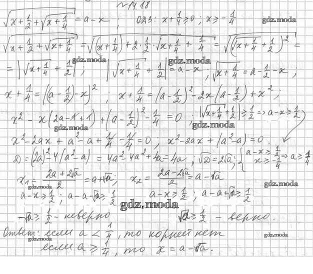 ОТВЕТ на задание № 14.18 Учебник по Алгебре 10 класс Мерзляк Алгоритм успеха Углубленный уровень