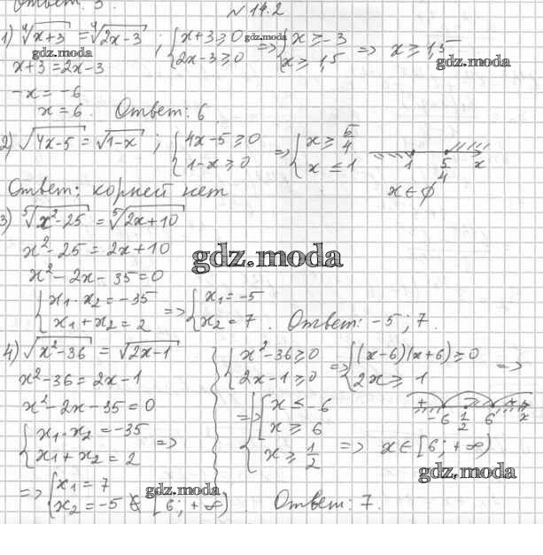 ОТВЕТ на задание № 14.2 Учебник по Алгебре 10 класс Мерзляк Алгоритм успеха Углубленный уровень
