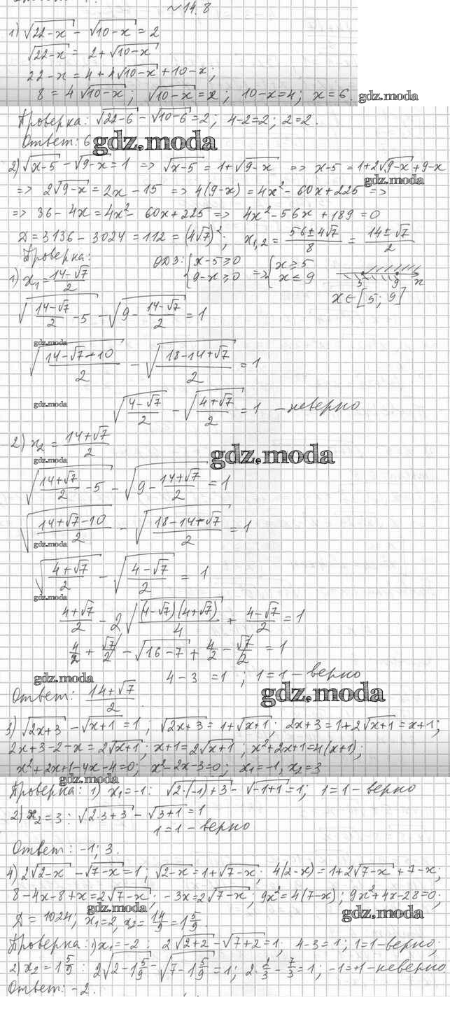 ОТВЕТ на задание № 14.8 Учебник по Алгебре 10 класс Мерзляк Алгоритм успеха Углубленный уровень