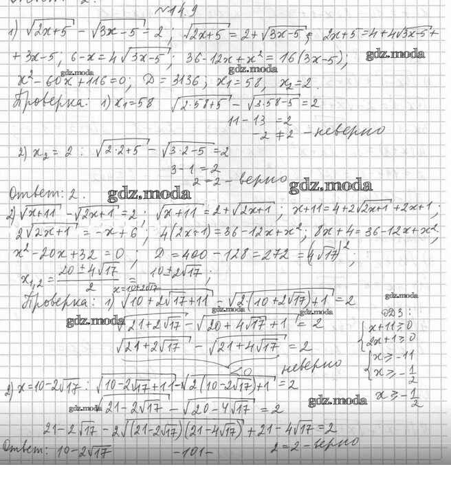 ОТВЕТ на задание № 14.9 Учебник по Алгебре 10 класс Мерзляк Алгоритм успеха Углубленный уровень